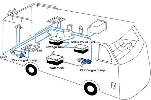 The F42 DC 12V or 24V Booster pump is our general-duty on-demand positive displacement pump. It provides reliable performance in high water flow, moderate pressure applications. Designed by 4 stronger chambers, the pump could provide up flow from 2.0 to 5.5 GPM and is capable of self-priming up to 6 vertical feet, and can run dry without damage. Serves 3 or more 1/2” (13 mm) outlets. This automatic demand water system pump has a built-in pressure switch, which automatically starts and stops when the faucet is opened and closed. They're easy to install, service and winterize.